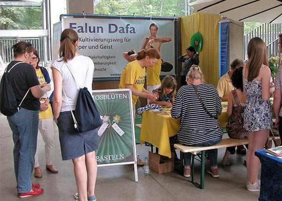 - 科隆手工创意展览会 法轮功受欢迎(图)- 六月九日至十日,法轮功学员应邀参加了科隆手工创意展览会。来参观这个展览的多是艺术和手工制作的爱好者及附近的学校教师。