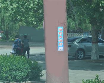 河北某地普天同庆五一三世界法轮大法日,粘贴大量标语、展板还悬挂许多条幅。辽宁某市庆5·13不干胶