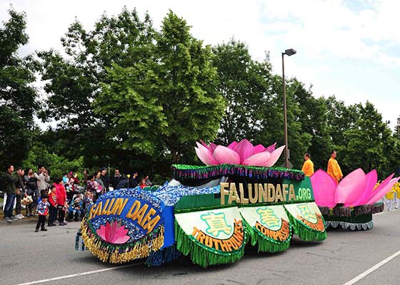 6月10日,法轮功学员参加了加拿大高贵林市泰迪熊节游行,受到观众热烈欢迎。观众纷纷赞叹法轮功游行队伍阵容庞大,祥和功法让人受益。