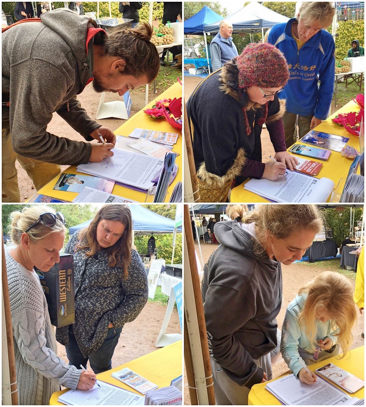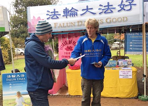 其中,一位和友人带着各自的孩子逛周六集市的澳洲西人女子,激动地告诉记者,法轮大法就是她真正需要的、正在寻找的功法,并非常感谢法轮功学员们从墨尔本来此,把法轮功的信息带给他们。还有居民表示要在身边的亲友中介绍,希望能邀请学员到当地举办免费的教功班。