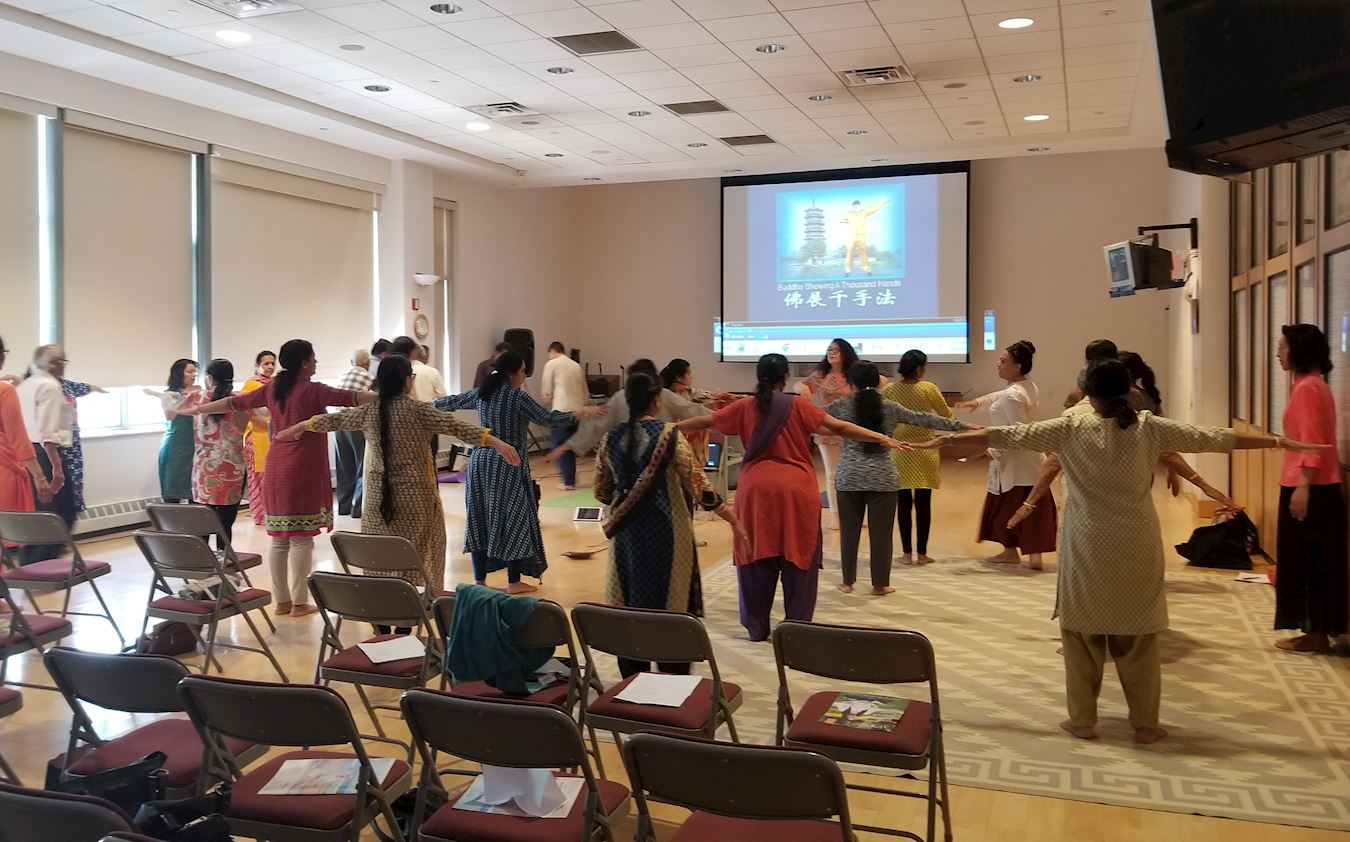 ![]() 图:位于皇后区埃姆赫斯特区的一座印度寺庙中,人们学炼法轮功。 |