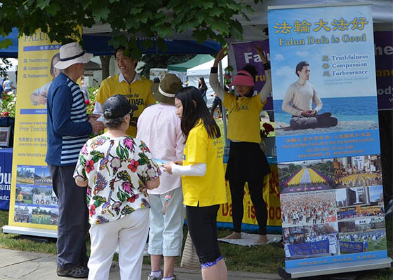 六月中旬,加拿大奥沙瓦市举办了第十四届牡丹花节,多伦多法轮功学员前往参加并向民众介绍功法,很多人留下联络方式要参加学习班。