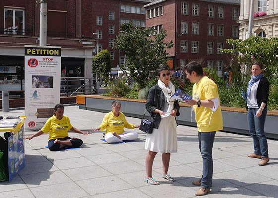 二零一八年六月十六日,法轮功学员来到法国阿密安市市政府广场,向那里的民众和游人介绍功法及发生在中国的迫害真相。