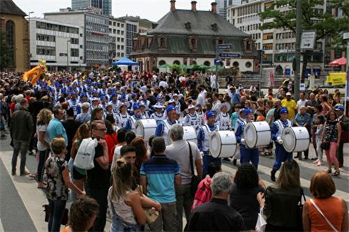![]() 图1~6:二零一八年六月十六日,法轮功学员组成的队伍在德国法兰克福市中心举行的第十一届多元文化节游行中,受到两旁观众的欢迎。 |