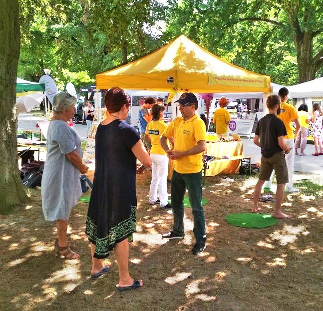 【明慧网二零一八年六月二十日】每年夏天,奥地利各地都会举办各种活动,吸引当地民众和游客,丰富文化生活。二零一八年六月法轮功(又称法轮大法)学员应邀参加了两个当地活动,向民众介绍功法,受到人们的欢迎。学员们也同时揭露中共对法轮功的迫害,善良民众纷纷签名支持反迫害。