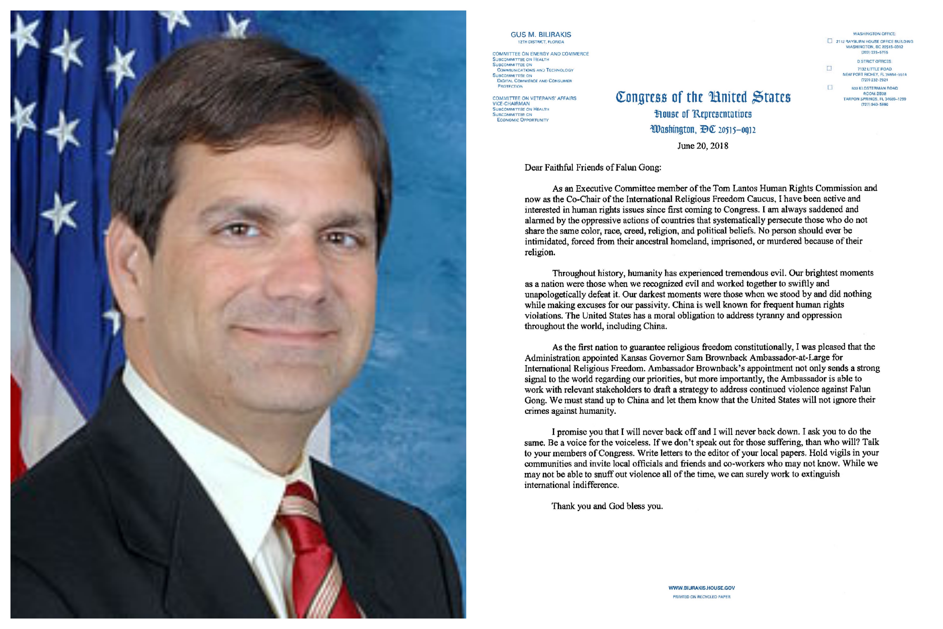 佛罗里达州联邦众议员古斯·比利拉基斯(Rep. Gus Bilirakis)在声援信中说:“作为兰托斯人权委员会执行委员会的一员,同时也是国际宗教自由委员会的联合主席,我从刚开始成为国会议员时,就一直非常关注人权问题。当看到国家政权因为肤色、种族、信仰、宗教和政治理念而系统性地迫害民众时,我总是感到悲伤和震惊。不应该有人因为信仰而遭到恐吓、驱逐出国、监禁和杀害。