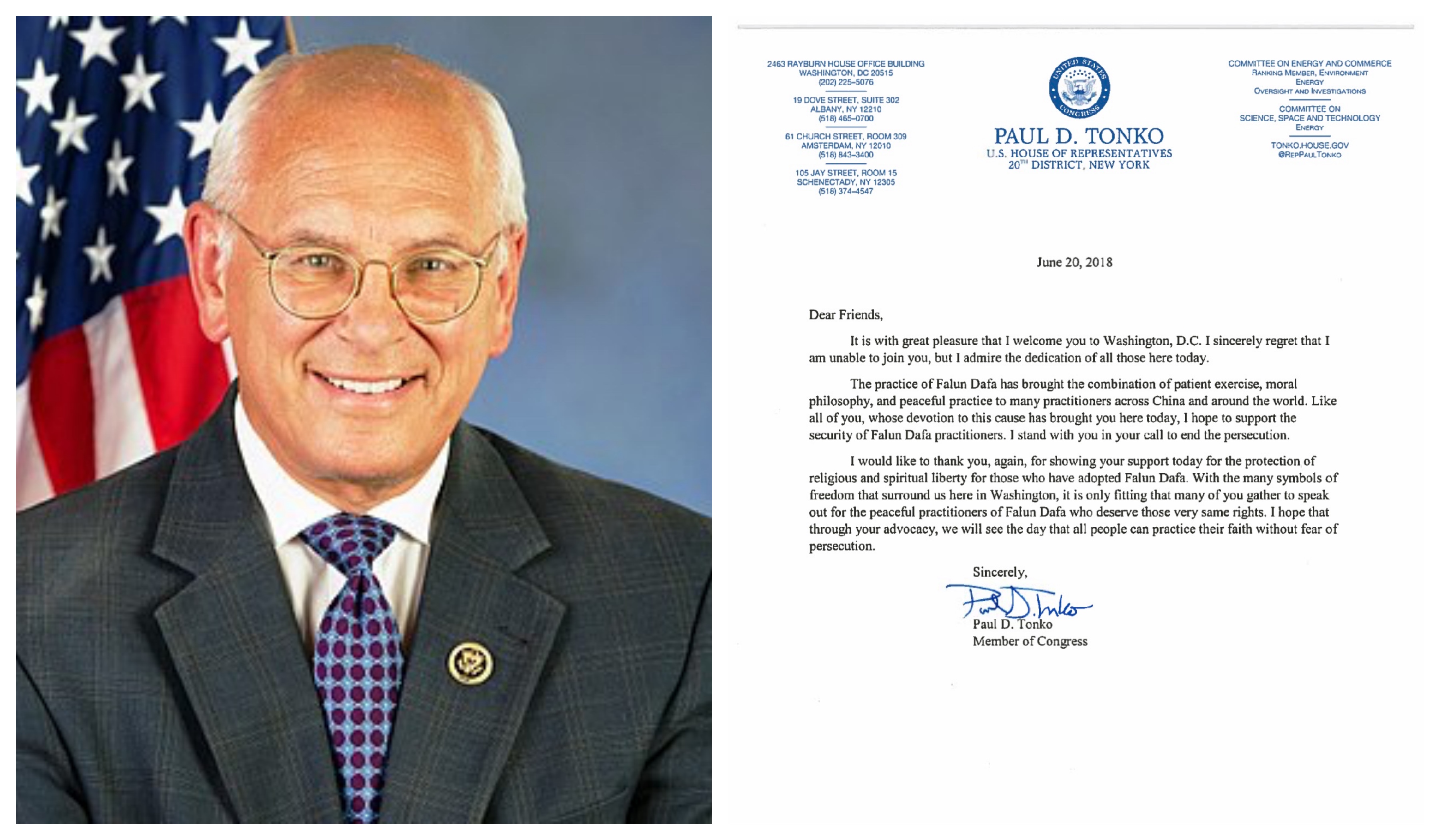 纽约州联邦众议员保罗·东科(Rep. Paul Tonko)在声援信中说:“我很高兴地欢迎你们来到华盛顿特区。我对于自己不能同你们一道参加感到非常遗憾。但是我钦佩所有今天到场的人。