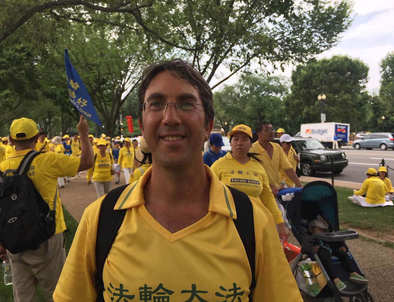 他表示,这个几千人的游行引起了他的兴趣更多地去了解法轮大法。