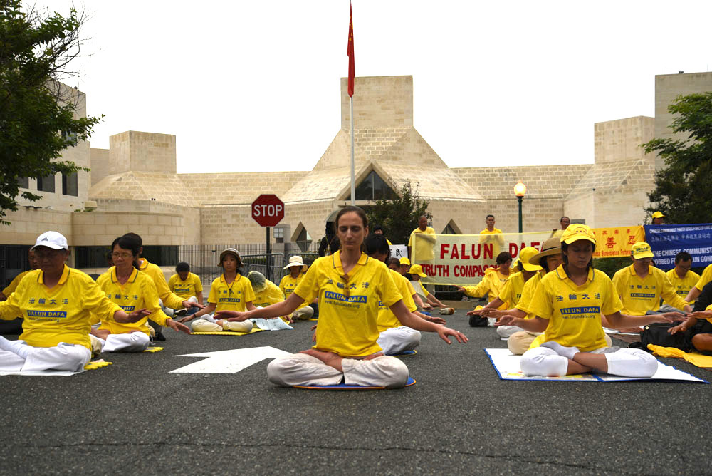 三年前逃离中共当局的迫害来到美国的于敬女士说:“我在国内时,因为不放弃修炼法轮功,曾三次被非法抓捕、判刑迫害,现在我获得了自由,可以无忧无虑地修炼法轮功了,我感到自己有义务为国内的同修们呼吁,希望自由的世界人们可以帮助他们恢复炼功权益。”于敬女士还说,她每周都会找几天时间来中使馆门前打坐炼功,有时使馆工作人员会和她私下里说很佩服法轮功学员,自己也是身不由己。
