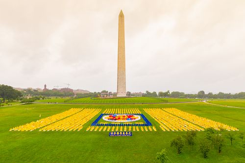 ![]() 图1:来自世界各地数千名法轮功学员于二零一八年六月二十二日在华盛顿纪念碑广场上集体炼功。 |