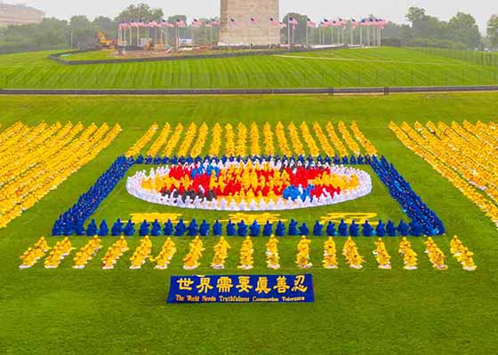 六月二十日,来自世界各地的近万名法轮功学员,在美国首都华盛顿特区举办了系列大型集体炼功和集会,以及反迫害大游行活动,展示法轮大法的美好,同时揭露中共迫害法轮功的真相。