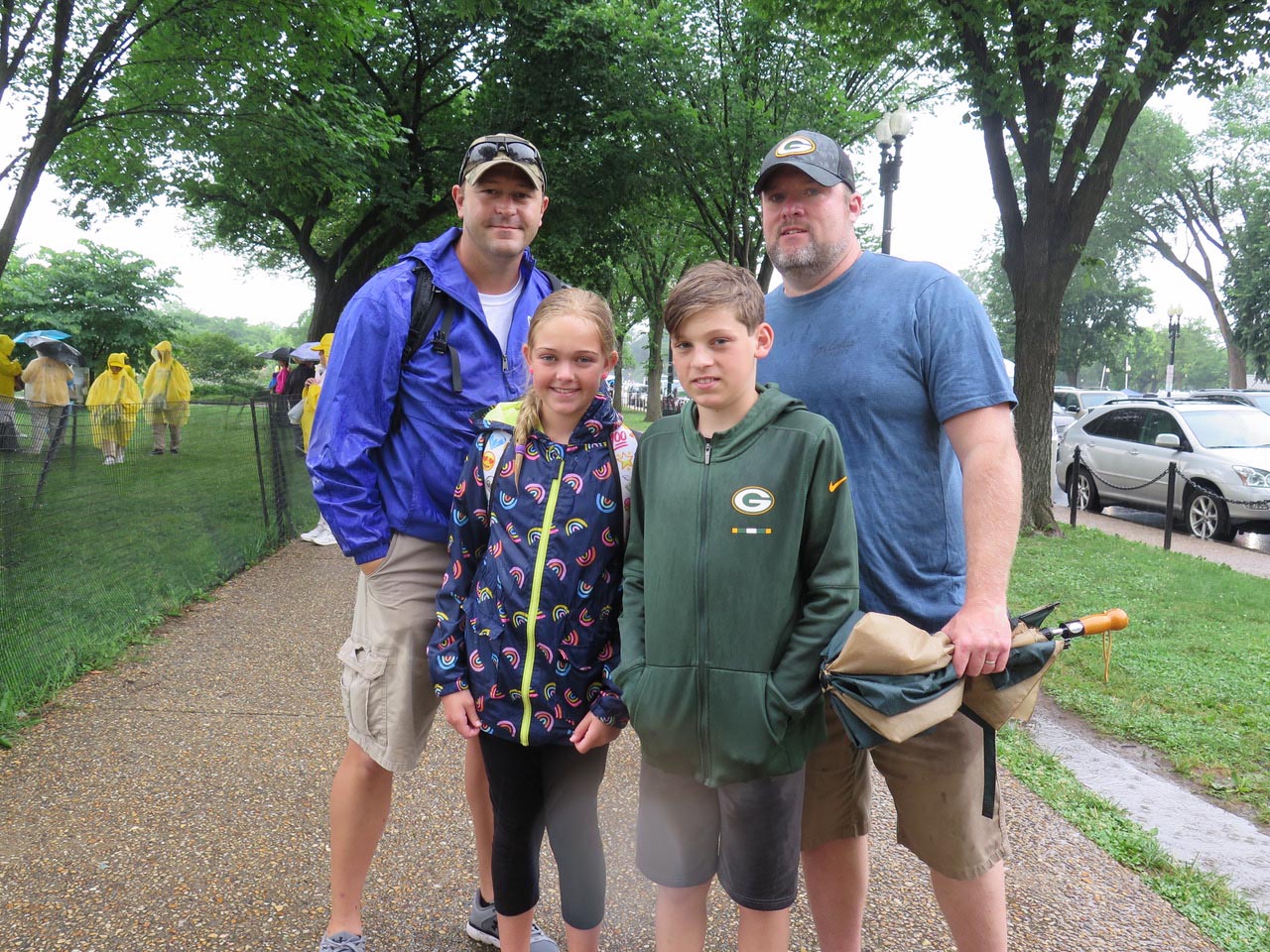 图4:美国人Whytney Barnett(左)和两个女儿Hparge和Nataore在雨中欣赏和赞美法轮功学员