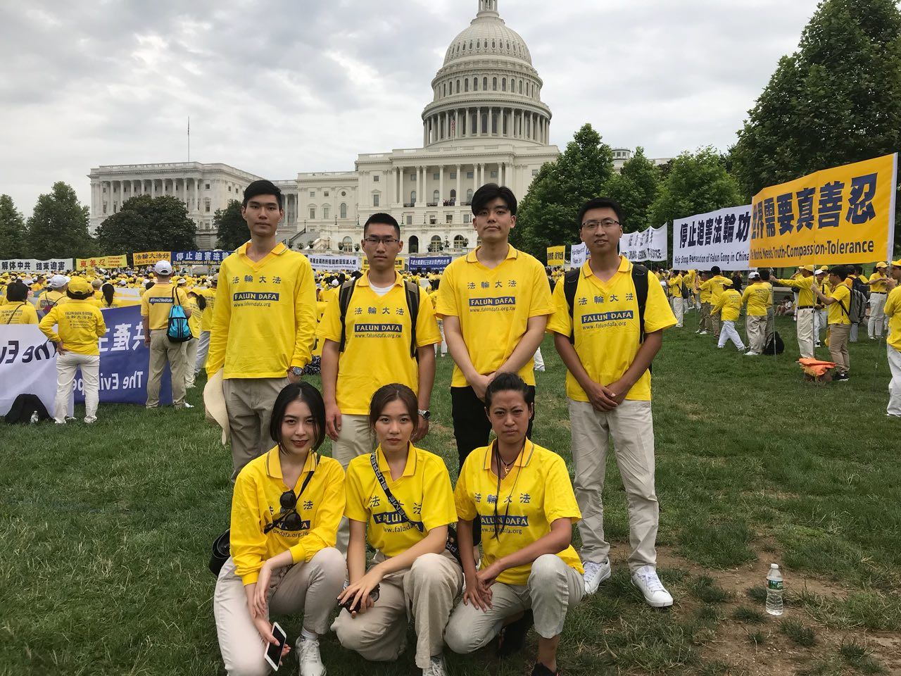 今年六月二十日,是林雨杉第一次在华盛顿DC参加法轮功学员大型反迫害活动以及修炼心得交流会。他说:“当我一早来到大炼功的场地时,我被眼前壮观的场面所震撼,因为这是我第一次看到数千名大法弟子聚在一起炼功,我的心中充满了激动与幸福感。在打坐时,我能够感受到周围许多股能量都在激励着我。我在举着大横幅游行时,面对路边驻足观望的行人,我感受到一种神圣的使命感——一份将大法的美好传递给世人、救度众生的责任。