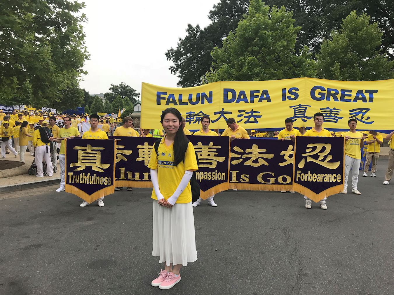 在加州大学学习语言学和人类学专业的孙东醒,今年才刚刚得法的她第一次来到华盛顿DC参加法会和反迫害活动。她表示,数千人的大游行的场面着实壮观,这里没有任何金钱利益,大家来自天南海北聚集在国会山庄前,为了洪扬大法的真、善、忍,顶着烈日,游行于漫漫长途中。