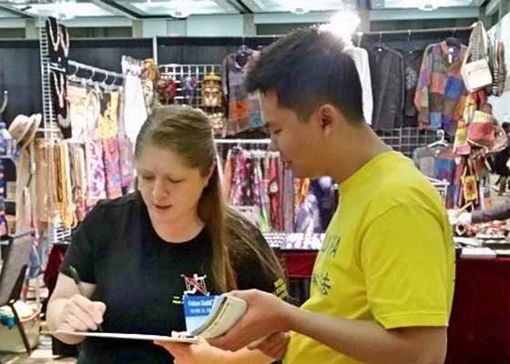 六月二十四日,达拉斯法轮功学员在“生活与健康大全”活动上向人们介绍法轮功。许多人对中共的迫害表示震惊,签名要求美国政府对此关注,促使中共停止迫害。