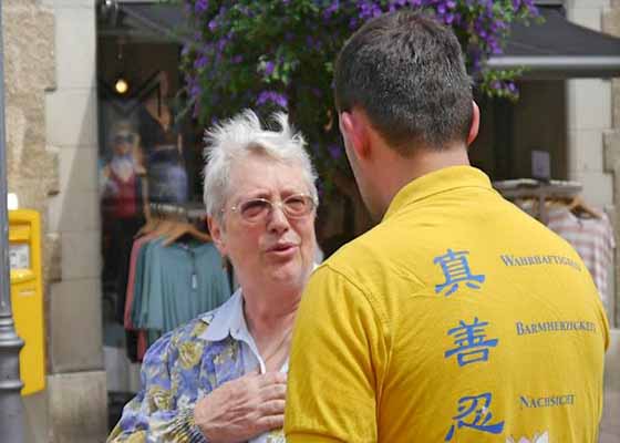 六月十六日,法轮功学员再次来到沙夫豪森市老城区的弗龙瓦格广场设立真相点,路人纷纷签名要求制止中共迫害法轮功甚至活摘法轮功学员器官的罪行。