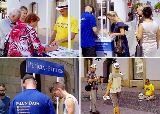 六月二日,斯洛伐克的法轮功学员在Trnava市中心摆好征签台,向过往行人散发着真相传单,讲述在中国发生的对法轮功的迫害。
