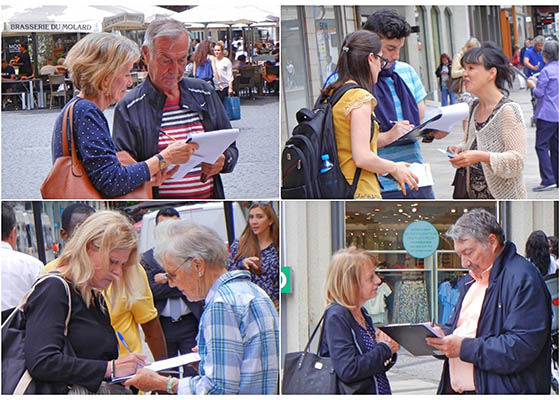 五月三十一日,瑞士法轮功学员再次来到日内瓦市中心的商业大街设立讲真相摊位,揭露中共对法轮功学员的残酷迫害。