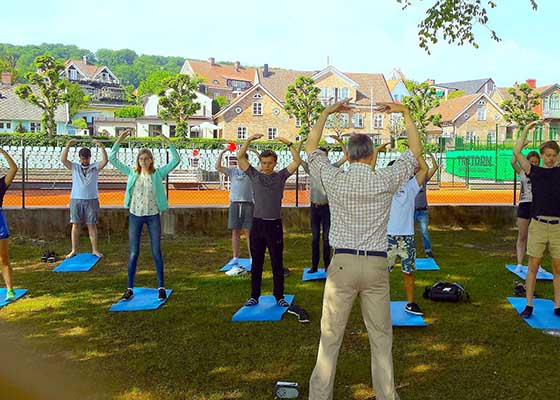 - 瑞典小城的中学生们喜迎法轮功(图)- 二零一八年五月,瑞典南部风景优美的小城巴斯塔德的高中学生们有缘尝试了源自中国的传统修炼功法——法轮功,还举行了法轮大法功法锻炼课程。