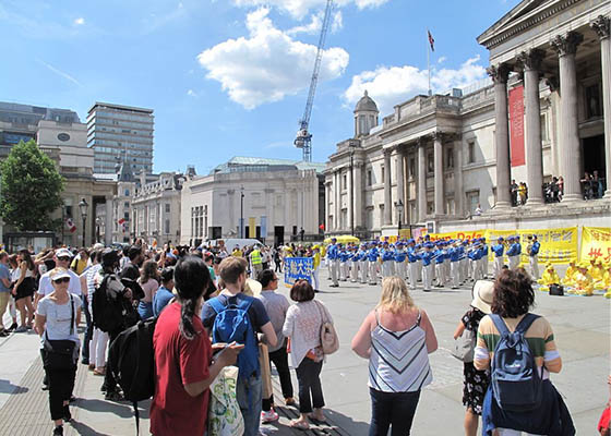 - 伦敦特拉法加广场上民众感受法轮功的美好(图)- 六月三日,英国法轮功学员汇聚伦敦举办集会游行系列活动,展示法轮功的美好,揭露中共对法轮功的残酷迫害,广大民众踊跃了解真相。