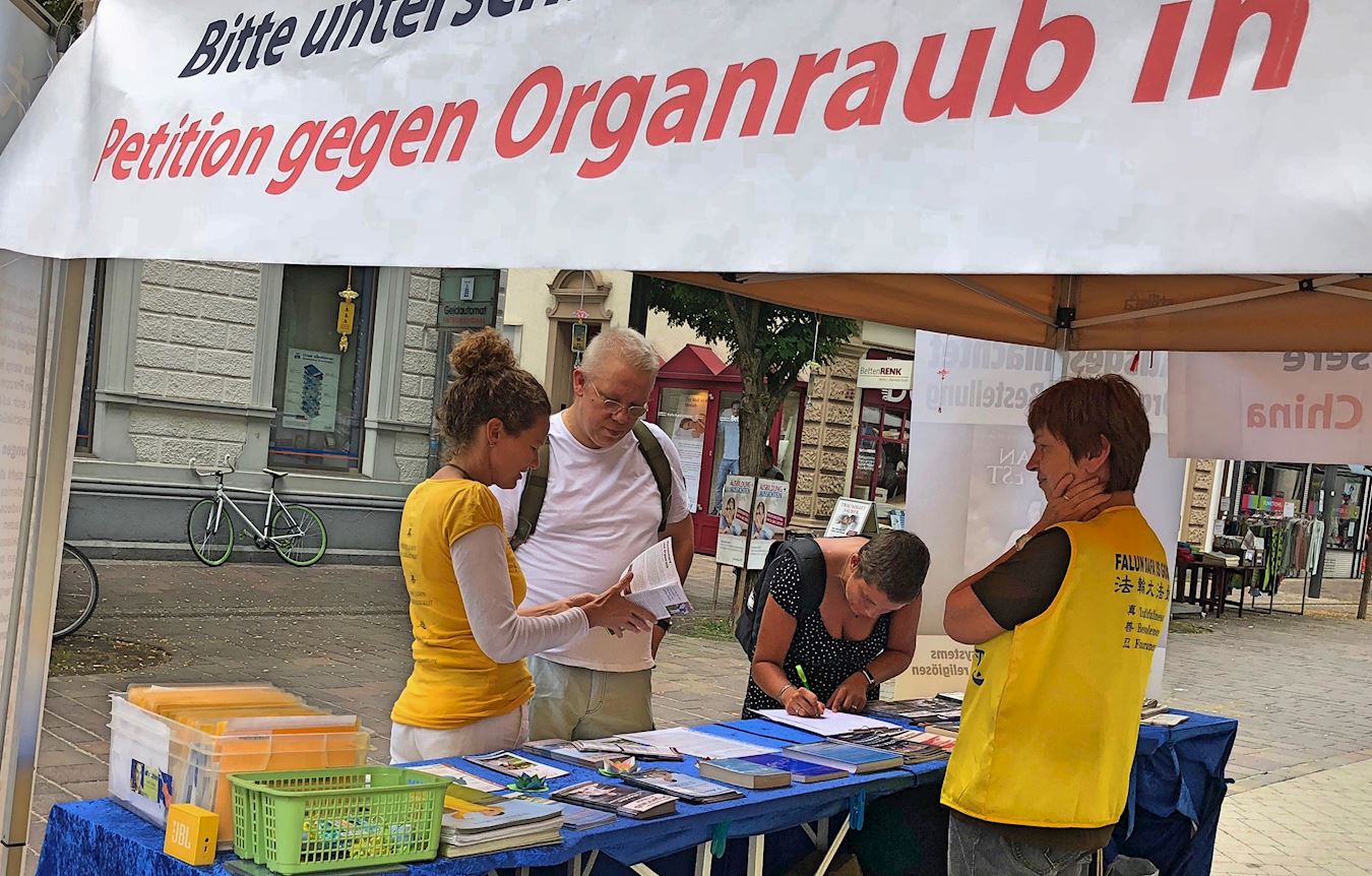 贝恩德表示:“我衷心祝愿你们好运,祝愿你们越来越强大有力量。”随后他走到信息台在支持制止中共强摘器官征签表上签名。