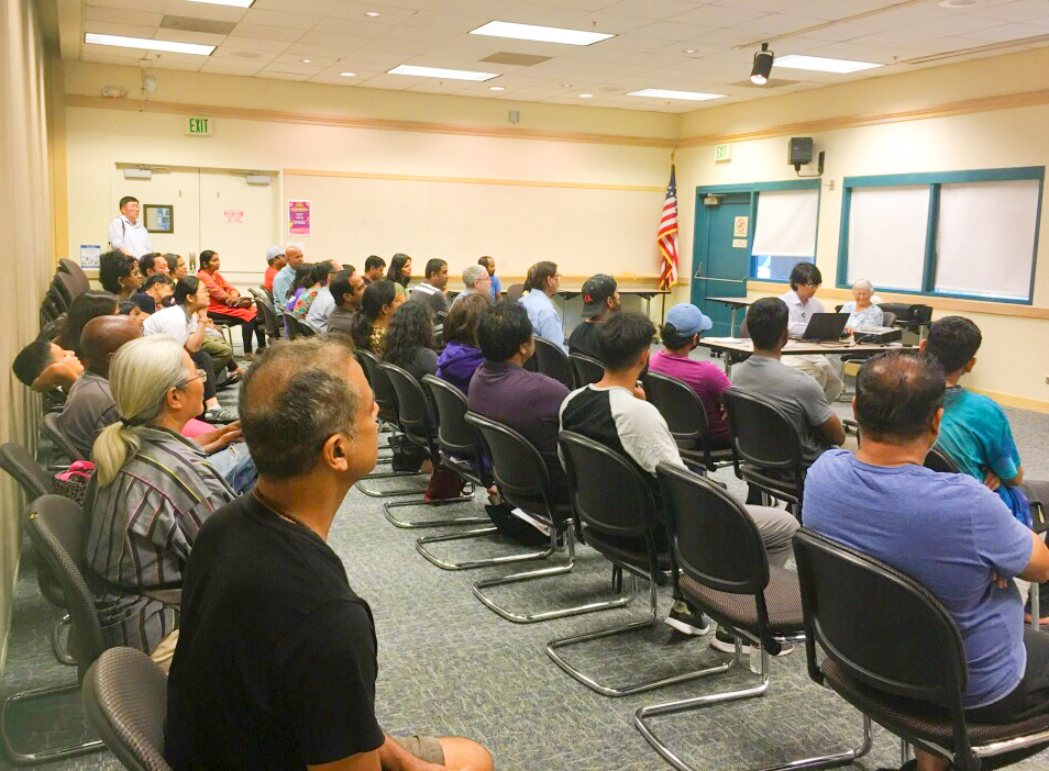 这是首次晚上在佛利蒙图书馆举办法轮功教功班。开班前,学员们对有多少人会来学功没有多少把握。毕竟这不是在周末,人们会不会在紧张的工作后赶来参加教功班?