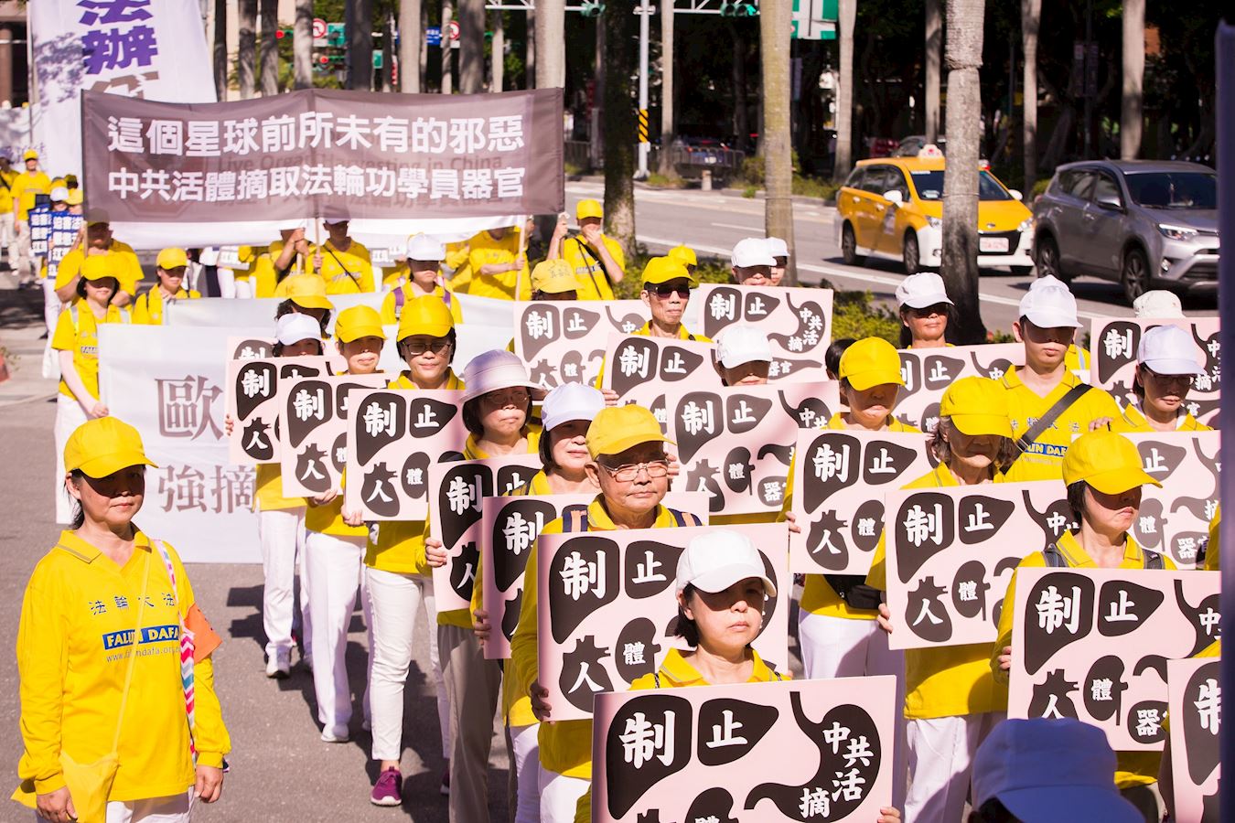 台北的萧先生在一旁看游行的队伍通过,正好眼前展示的是中共活摘法轮功学员器官的画面,萧先生表示,他知道中共活摘法轮功学员器官的消息,他曾经主动上网收信看到这场惨无人道的真相,进了参与反对活摘器官的征签活动。他表示,这样的事情是无法容忍的,甚至比清朝十大酷刑还可怕,因为是强摘活人的器官,他除了自身知道真相,更主动传真相,让更多的人知道,而且他感慨地说:只有中共,才会发生这样的事情。