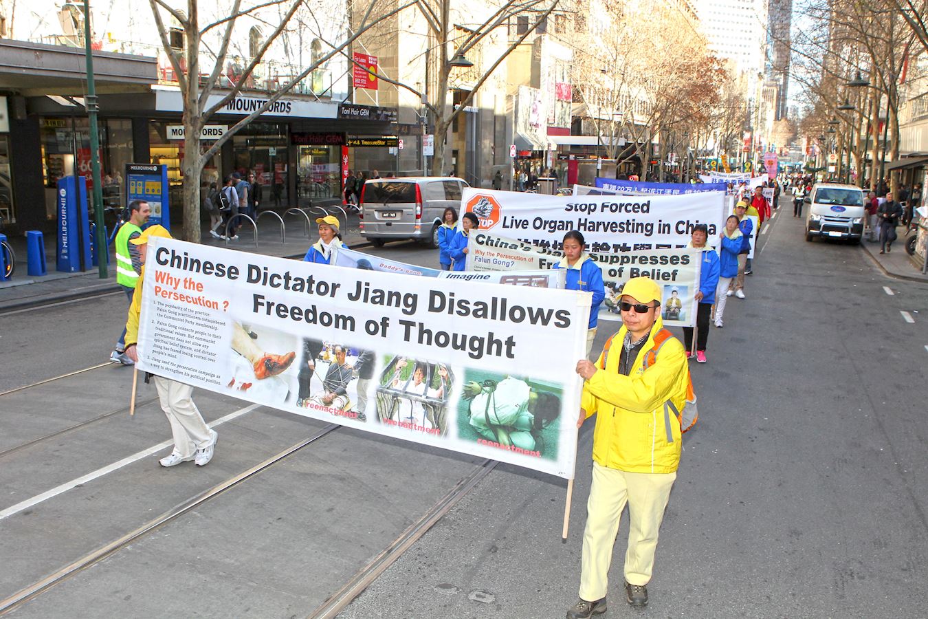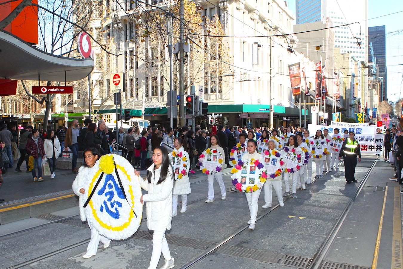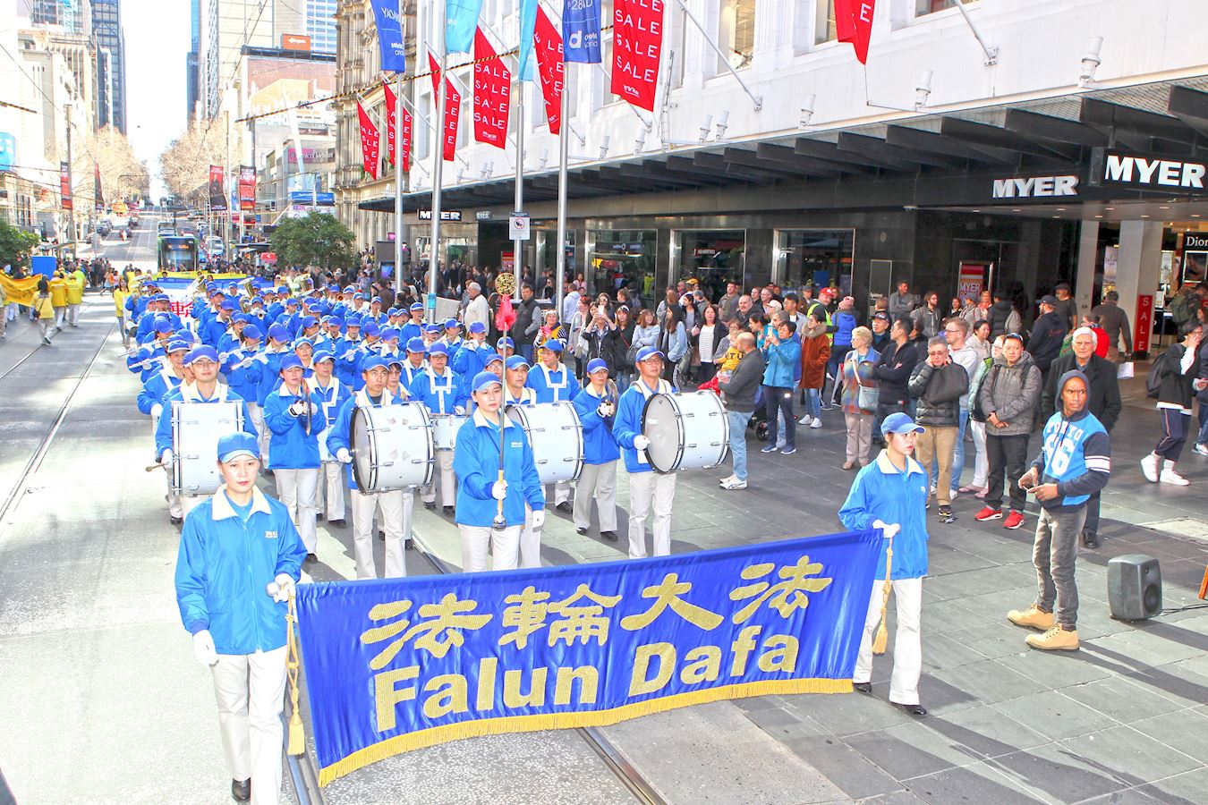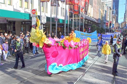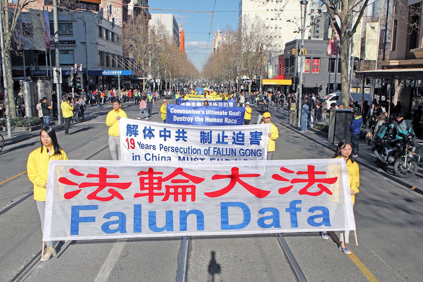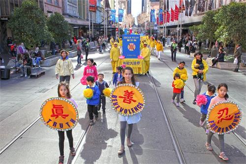 '图1~11:墨尔本法轮功学员在市中心举行反迫害十九周年游行。'