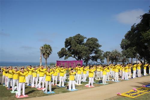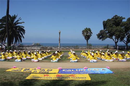 ![]() 图1~4:早晨,洛杉矶部份法轮功学员集体大炼功 |