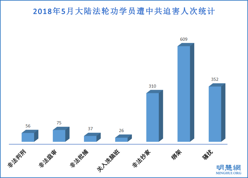 ![]() 图1:2018年5月大陆法轮功学员遭中共迫害人次统计 |