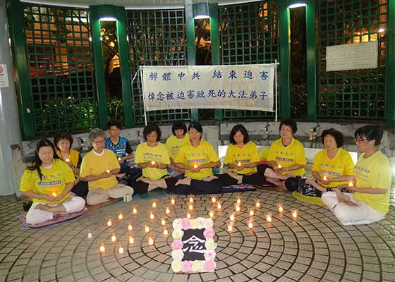 七月十七日晚,澳门法轮功学员聚集在澳门中联办对面的公园,滂沱大雨中举行反迫害十九周年集会,抗议中共对法轮功学员的邪恶迫害。