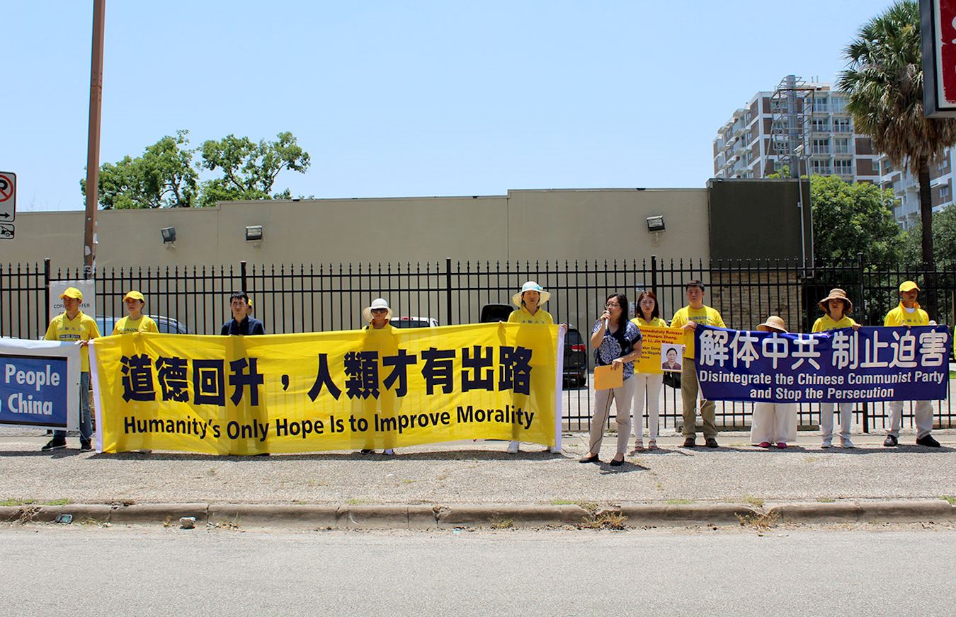 休士顿学员中领馆前集会 纪念反迫害十九周年(图)