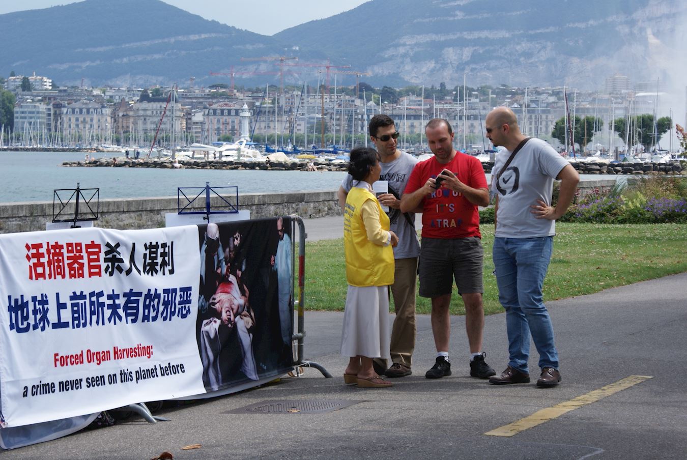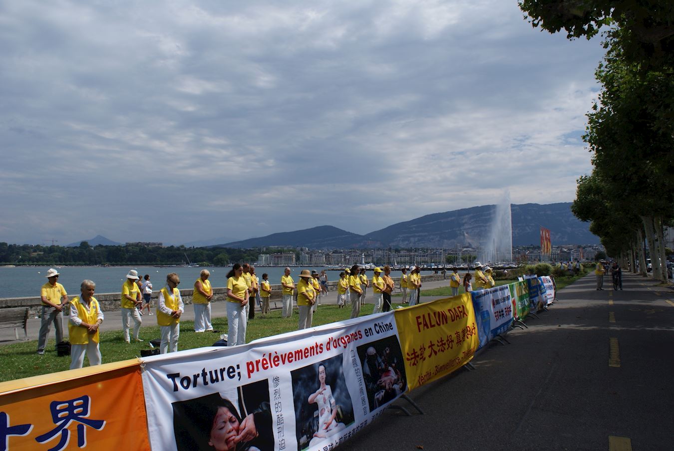 【明慧网二零一八年七月二十一日】二零一八年七月二十日,是中共江泽民集团发起残酷迫害法轮功第十九年。部份瑞士法轮功学员在坐落在日内瓦湖畔的联合国人权高级专员署前举行集会。谴责中共当局十九年来对法轮功团体的残酷迫害,甚至强摘法轮功学员器官的反人类罪行。同时,感谢国际社会对法轮功学员反迫害的支持,呼吁制止对法轮功学员的迫害,抓捕迫害法轮功的元凶江泽民和所有其他制造这场迫害的责任人,并将他们绳之以法。