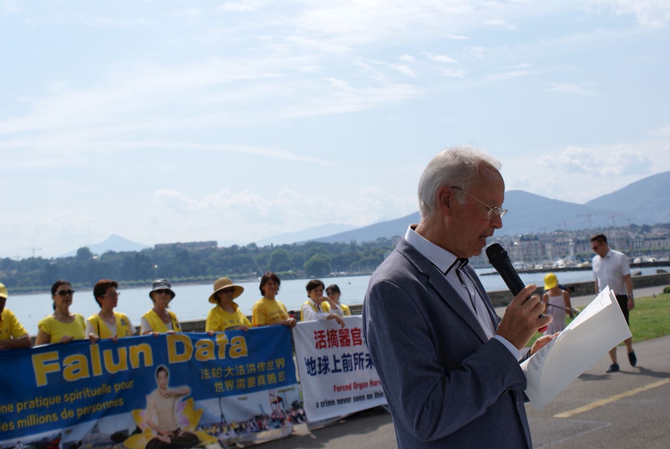 前日内瓦州大议会议员亨利·拉帕兹(Henry Rappaz)先生在发言中表示:“作为日内瓦州大议会的前议员,和一个有良心的人,我将持续不断地揭露和坚持不懈地强烈谴责所有这些可怕的非人道的作为和所有中共政权阴险无耻的行径,我要和受害人、他们的家人,和他们的朋友一起发声,给予他们支持。希望总有一天,基于真善忍美德的法轮功会恢复名誉,而真善忍也是我们的世界必需的普世正面价值。”