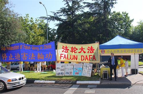 ![]() 图1~2:西班牙法轮功学员在中使馆前集会吁制止迫害 |