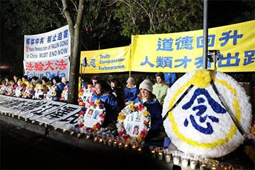 2018年7月20日晚,墨尔本部份中西法轮功学员,在中领馆对面举行了反迫害19周年烛光悼念活动。这是墨尔本一年之中最冷的时节,白天时断时续的冷雨,让夜晚的寒风更凛冽。人群中有刚刚学会走路的幼童,也有80多岁的长者;有才走入修炼的15岁学生,也有20多年前亲耳聆听李洪志师尊第一次澳洲讲法的老学员。