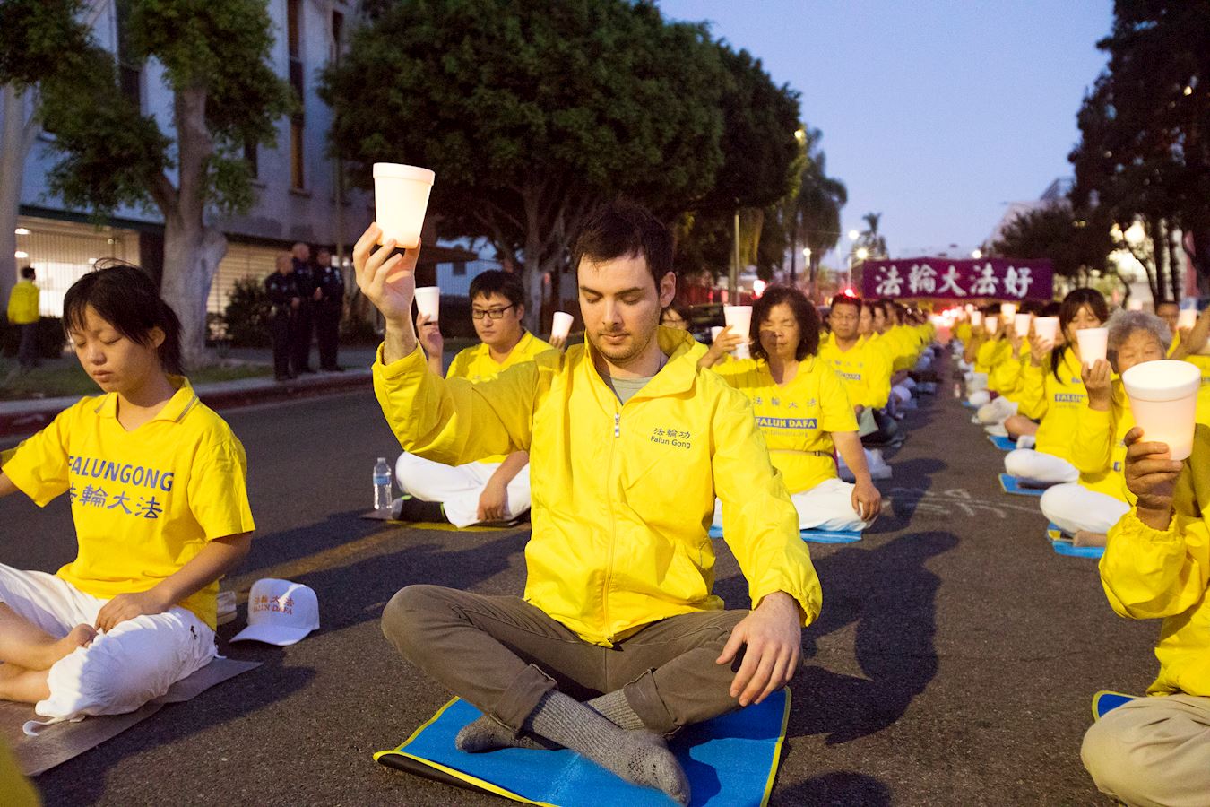 反迫害十九周年 洛杉矶法轮功学员烛光夜悼(图)