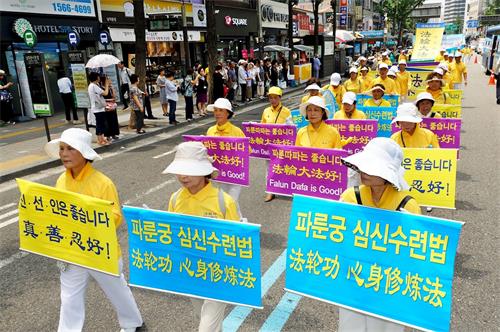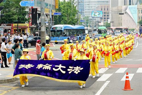 '图4~10:2018年7月20日,韩国法轮功学员在首尔市中心举行游行。'