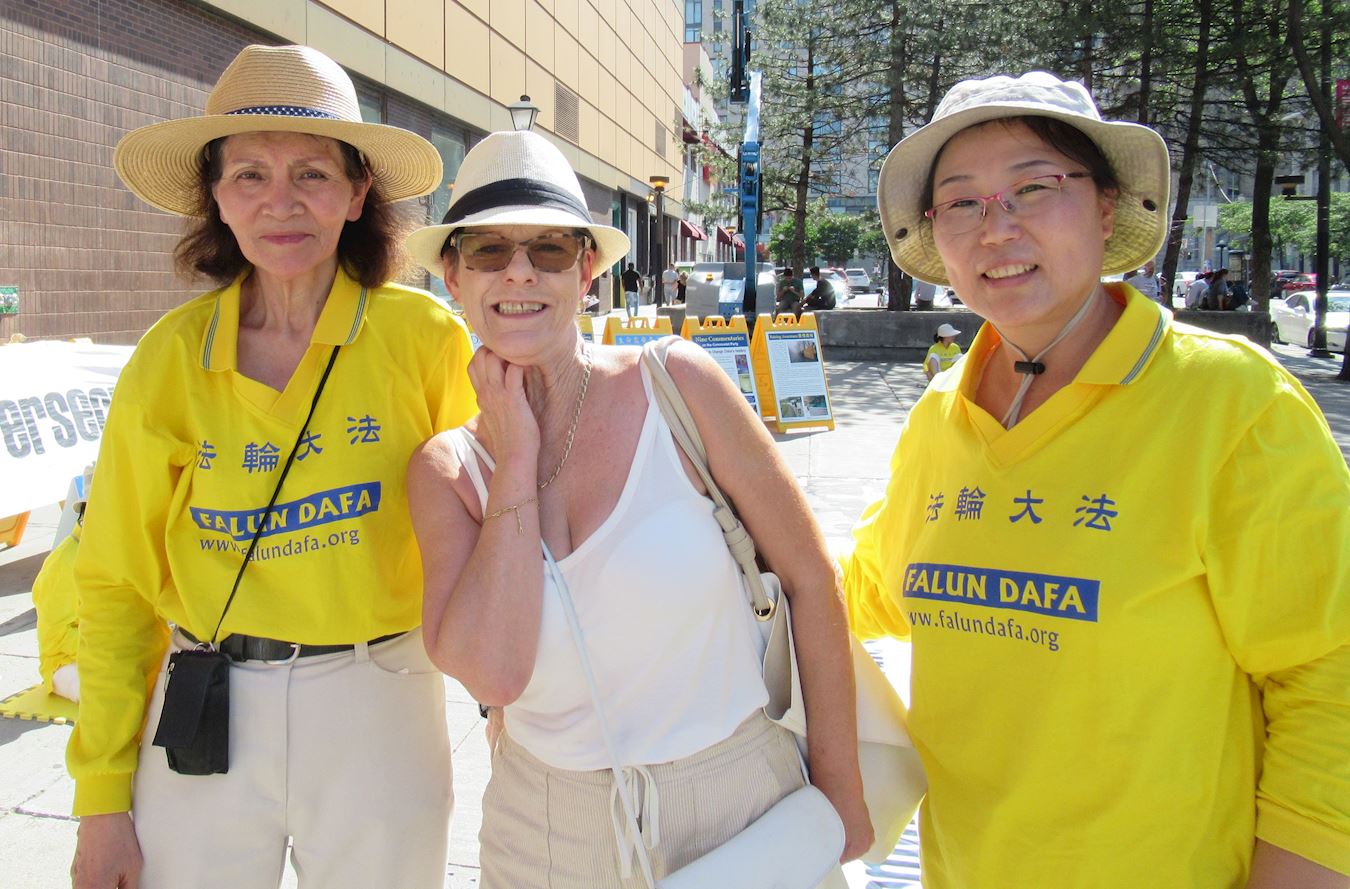 图3:渥太华市民安妮·帕奎特(Anne Paquette,中)与法轮功学员合影。