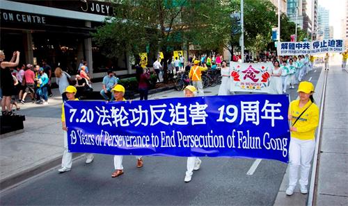 ![]() 图1~13:13:二零一八年七月二十日,多伦多法轮功学员在市中心举行“七二零”十九周年反迫害大游行。 |