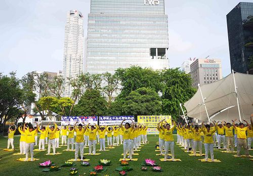 1~3,新加坡法轮功学员在芳林公园集体炼功
