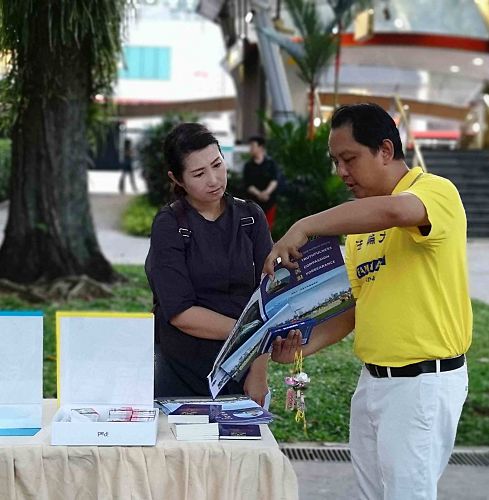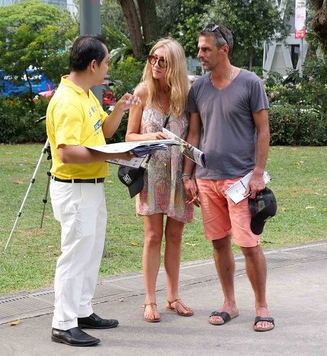 【明慧网二零一八年七月二十三日】新加坡七月的午后,当人们漫步在车水马龙的繁华闹市,不经意间走入碧草如茵的芳林公园时,一群朴实平和的法轮功学员所传递的迫害真相令他们震惊不已。