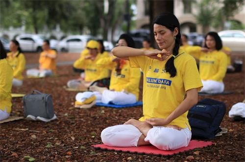 ![]() 图1~3:法轮功学员聚集在奥兰多市中心的伊奥拉湖(Lake Eola)公园集体炼功 |