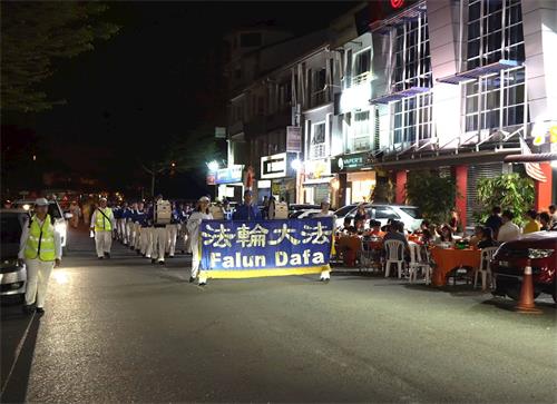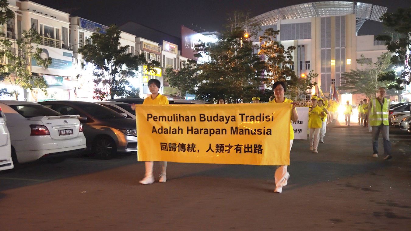 7月14日晚,法轮功学员在雪兰莪州Setia Alam举行反迫害游行,让更多的民众了解真相,帮助制止这场持续了十九年的残酷迫害。