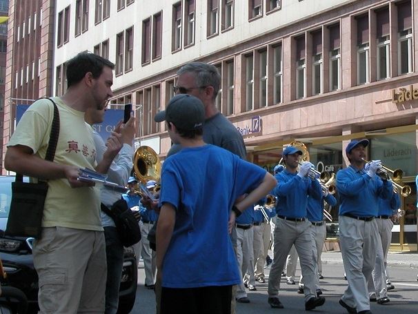 在游行的同时,学员们还在柏林市中心设置了两个真相点。与以往真相点不同的是,这段时间来真相点的人很多都在看游行时读过有关法轮功及中共迫害的传单了。他们有些人希望能在真相点更详尽地了解中共对法轮功的迫害,有些人想知道怎么能开始学炼法轮功,也有很多人特地来真相点向学员问好,并表示支持法轮功学员们和平反迫害的活动。