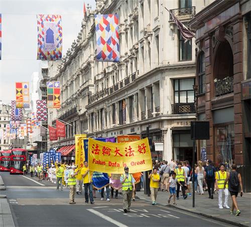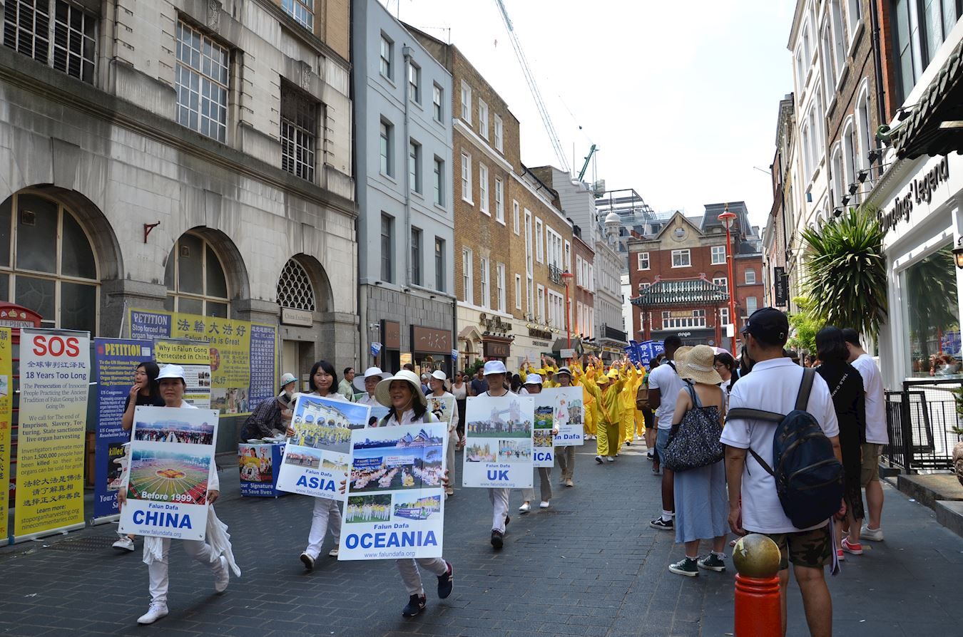 '图1~8:二零一八年七月二十一日,英国法轮功学员举办反迫害十九周年游行。'