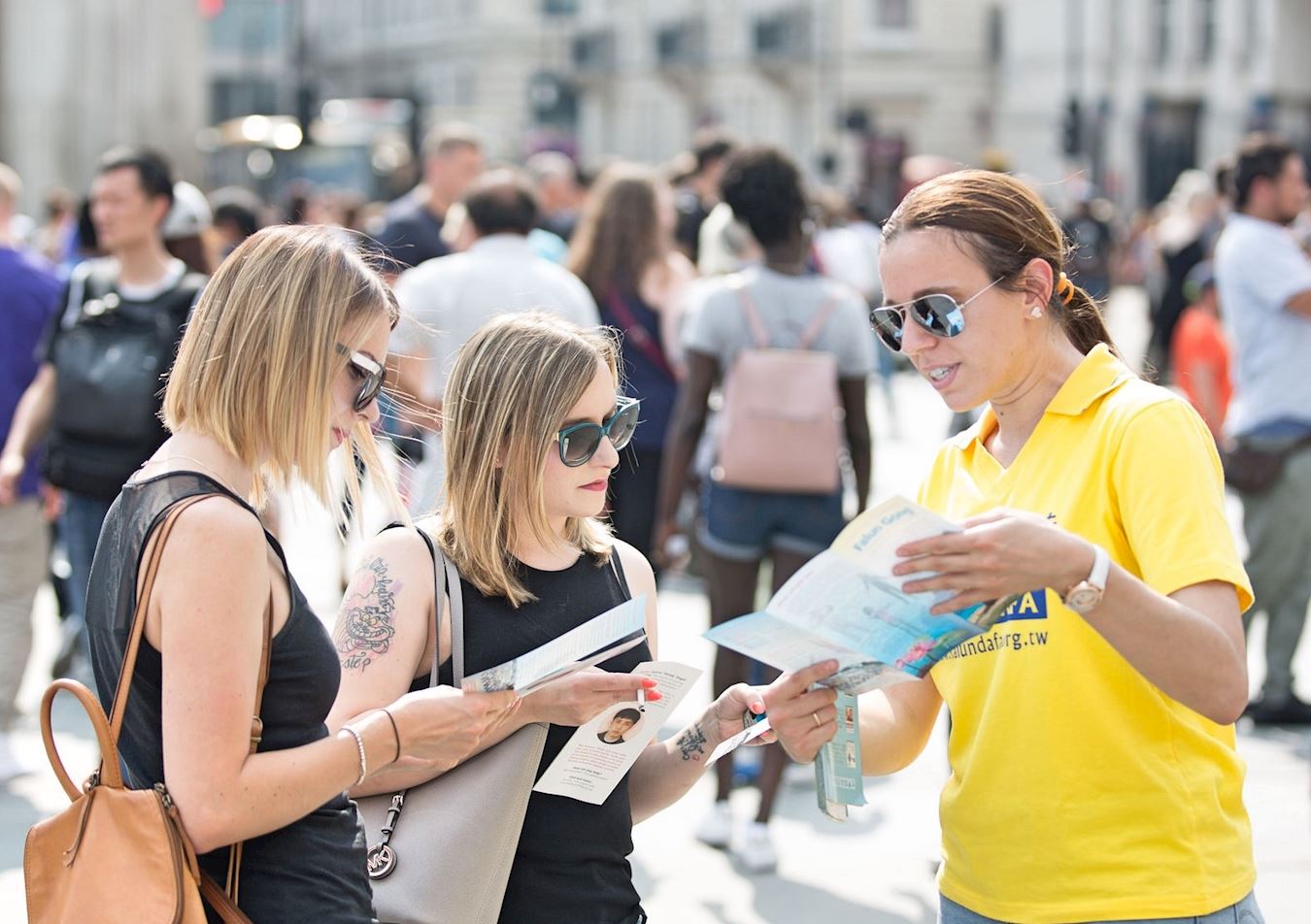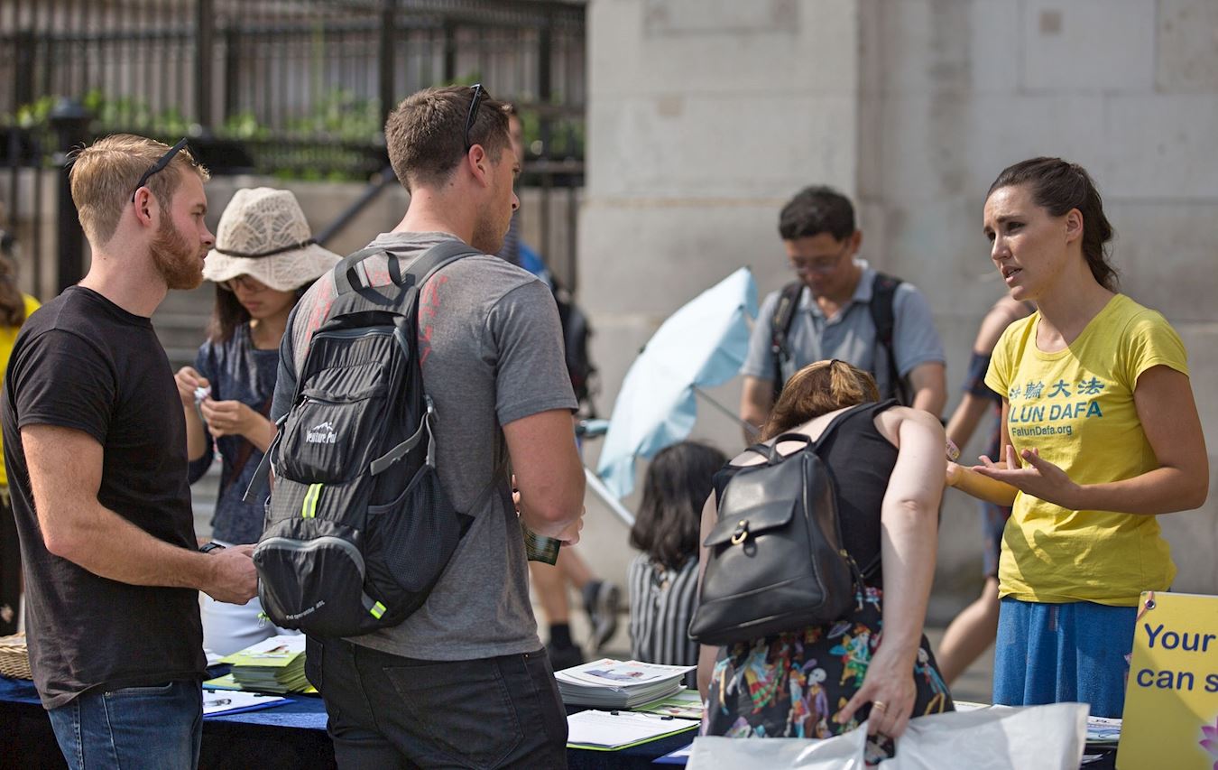 图18:从爱尔兰来伦敦度假的马修(Mathew)说他第一次遇到法轮功是十年前,在美国。他说,“世界需要真善忍,一直都需要”。