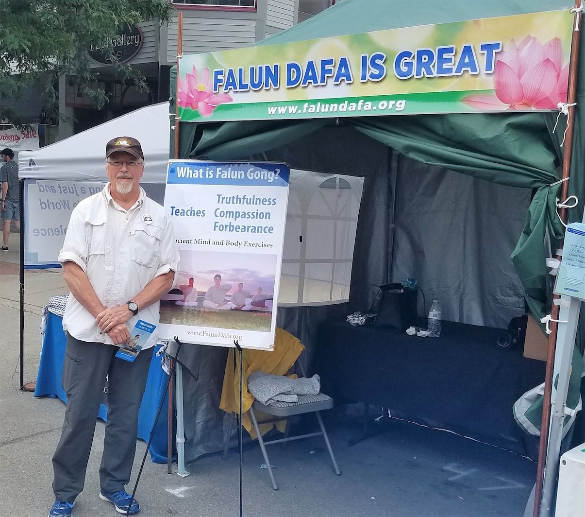 密西根法轮大法佛学会自从二零零九年以来,已经连续十年参加安娜堡街道艺术节。借此夏日盛会,向这里的民众传播法轮大法的美好,并揭露中共对法轮功的迫害。