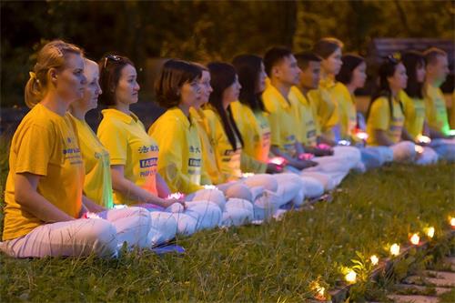 ![]() 图2~4:部份俄罗斯法轮功学员在莫斯科中领馆对面烛光悼念被迫害致死的法轮功学员 |