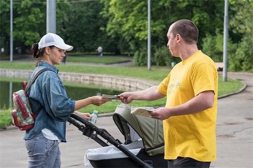 ![]() 图5~7:法轮功学员和俄罗斯民众讲真相 |